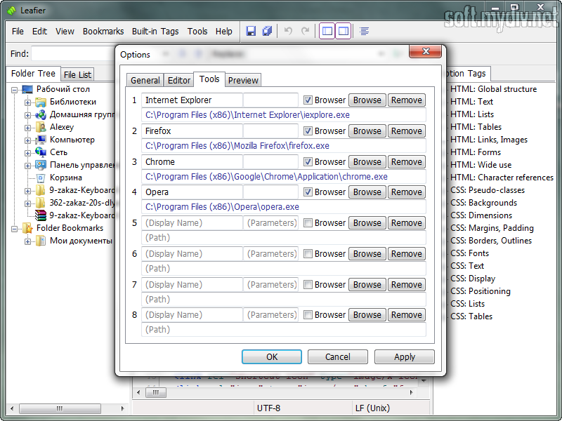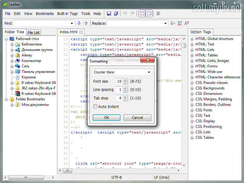 Leafier - это, наверное, самый простой и "легкий" HTML-редактор в мире. Программа займет на жестком диске всего лишь несколько килобайт и устанавливается за пару секунд. Несмотря на небольшой размер, данный редактор обладает всеми основными функциями для программ такого рода. К тому же он имеет встроенную поддержку Unicode и набор инструментов для работы с тегами. Leafier отлично подойдет нетребовательным программистам и веб-дизайнерам, а также позволить быстро вносить незначительные изменения в HTML - страницы.